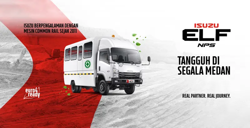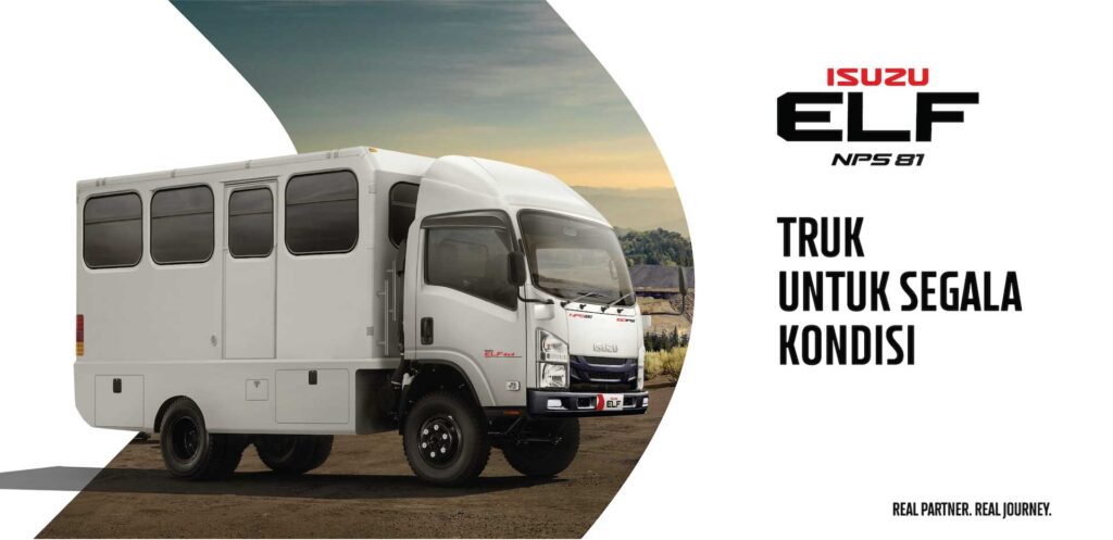 Isuzu ELF NPS 4×4 memiliki kaca depan yang lebih tegak dan besar, membuat jarak pandang lebih luas, siap memberikan rasa aman dan nyaman yang ekstra bagi pengemudi. Juga dilengkapi dengan sensor Cabin Lock Warning Buzzer yang memberikan tanda peringatan saat kabin belum terkunci, sehingga membantu memaksimalkan keselamatan pengemudi saat berkendara. Fan blower guna meningkatkan sirkulasi udara di dalam kabin, dengan slot USB charger pengemudi dapat menikmati perjalanan tanpa khawatir kondisi baterai ponsel. Isuzu ELF NLR juga dilengkapi dengan APAR (Alat Pemadam Api Ringan) untuk memaksimalkan keamanan pada kondisi genting (kebakaran) serta kamera mundur agar pengemudi dapat melihat kondisi dibagian belakang kendaraan, sehingga memudahkan pengemudi saat mundur atau memarkir kendaraan.